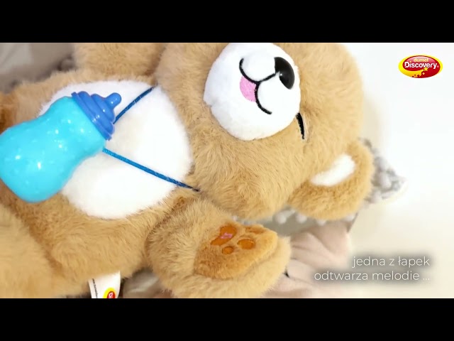 Misiu czeka na przytulenie! Wesoły zwierzaczek posiada mięciutkie futerko, a w swym wnętrzu kryje szereg niespodzianek! Pogłaszcz go po główce lub brzuszku i nakarm dołączoną do zestawu buteleczką, a z radością odwdzięczy się „misiowymi” odgłosami, zamykając przy tym i otwierając oczka. Zwierzak posiada dwie aktywne łapki. Naciśnięcie pierwszej uruchamia funkcję nagrywania i odtwarzania nagranego dźwięku, a naciśnięcie drugiej uruchamia urocze melodie.