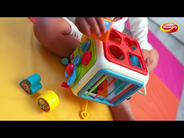 Baw się kosmicznie z kostką pełną dźwięków i zręcznościowych niespodzianek! Każda ze ścianek to inna, kolorowa przygoda. Znajdziemy tu elementy do przesuwania, śmigło do obracania, sznureczki, przez które widać wnętrze zabawki, przyciski aktywujące dźwięk i podświetlenie bębenków, praktyczny, podnoszony uchwyt do przenoszenia kostki, a także najlepsze – odpinaną, dwustronną ściankę z trybikami do kręcenia i fakturowanymi linkami z wypustkami do przeciągania! Możliwość odpięcia ścianki, pozwala zabrać ją ze sobą w dowolne miejsce, aby wszędzie mogła towarzyszyć maluchowi.